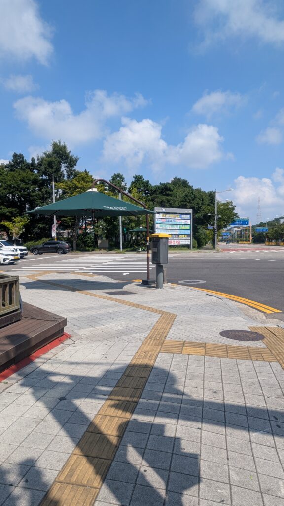 真夏だったので、歩道にある巨大な日傘はかなり助かりました。日本にも欲しいです。