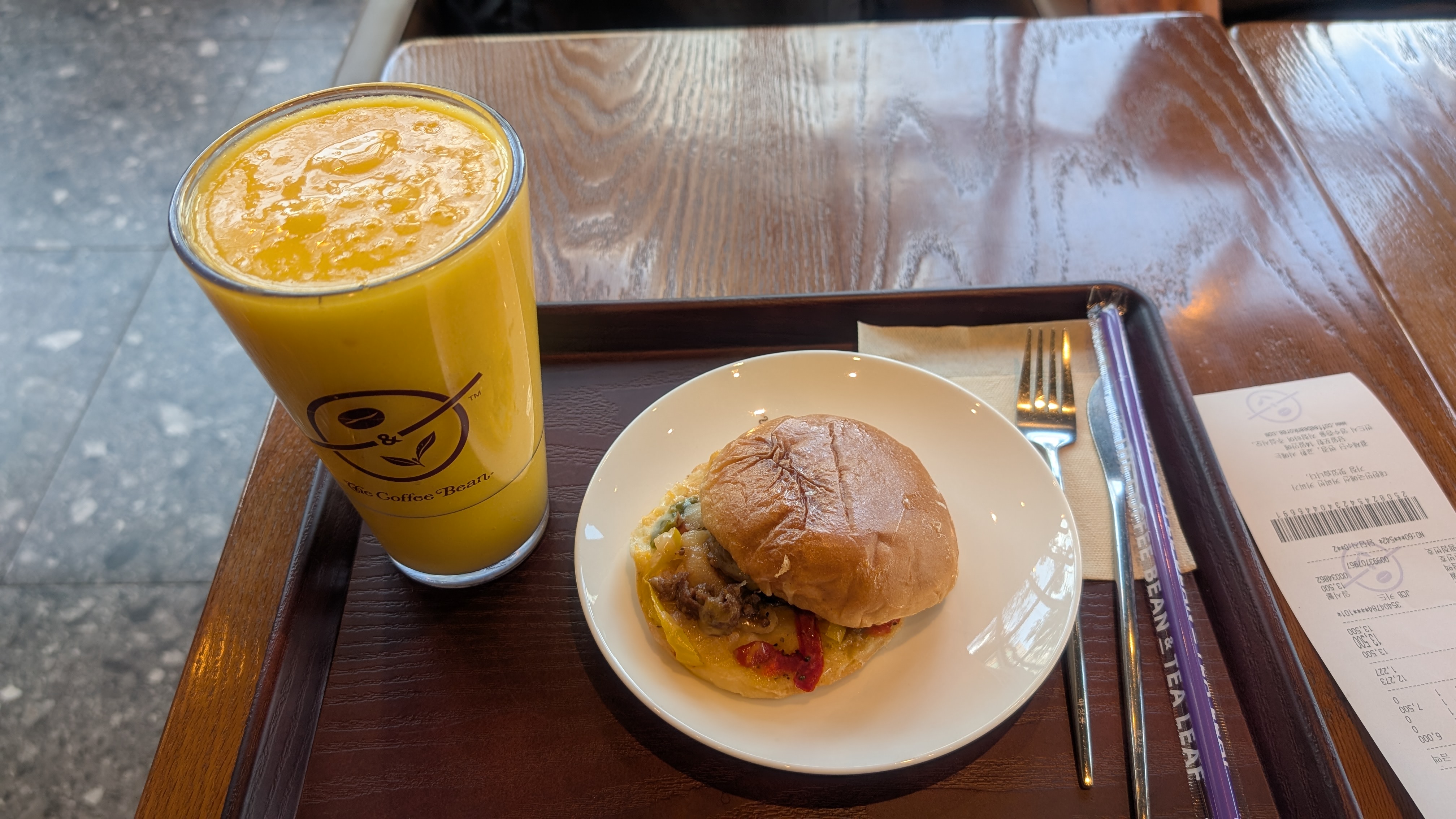 朝食は、雲西のThe Coffee Beanにしました。朝から韓国らしい料理を食べるパワーがありませんでした。。