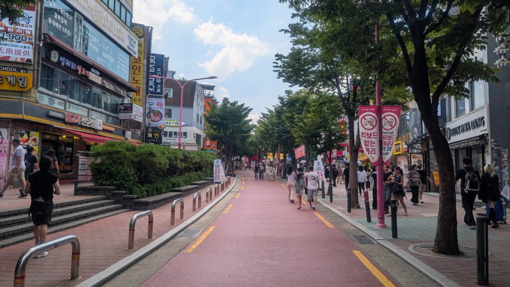 弘大(ホンデ)の大通り。観光客で賑わっていました。