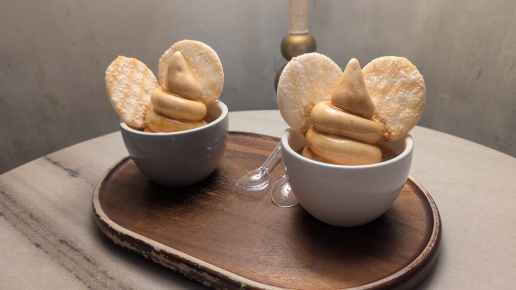 少しお腹も空いていたので、「ネズミラテ」を頼みました。コーヒーはかなり苦く、ソフトクリームとの対比を楽しめました。2枚の煎餅がネズミの耳になっていて、遊び心があります。(韓国語のメニューを翻訳した時「ネズミ」の文字が見えて翻訳ミスを疑いましたが、実物を見て納得しました。ハハッ🐭)