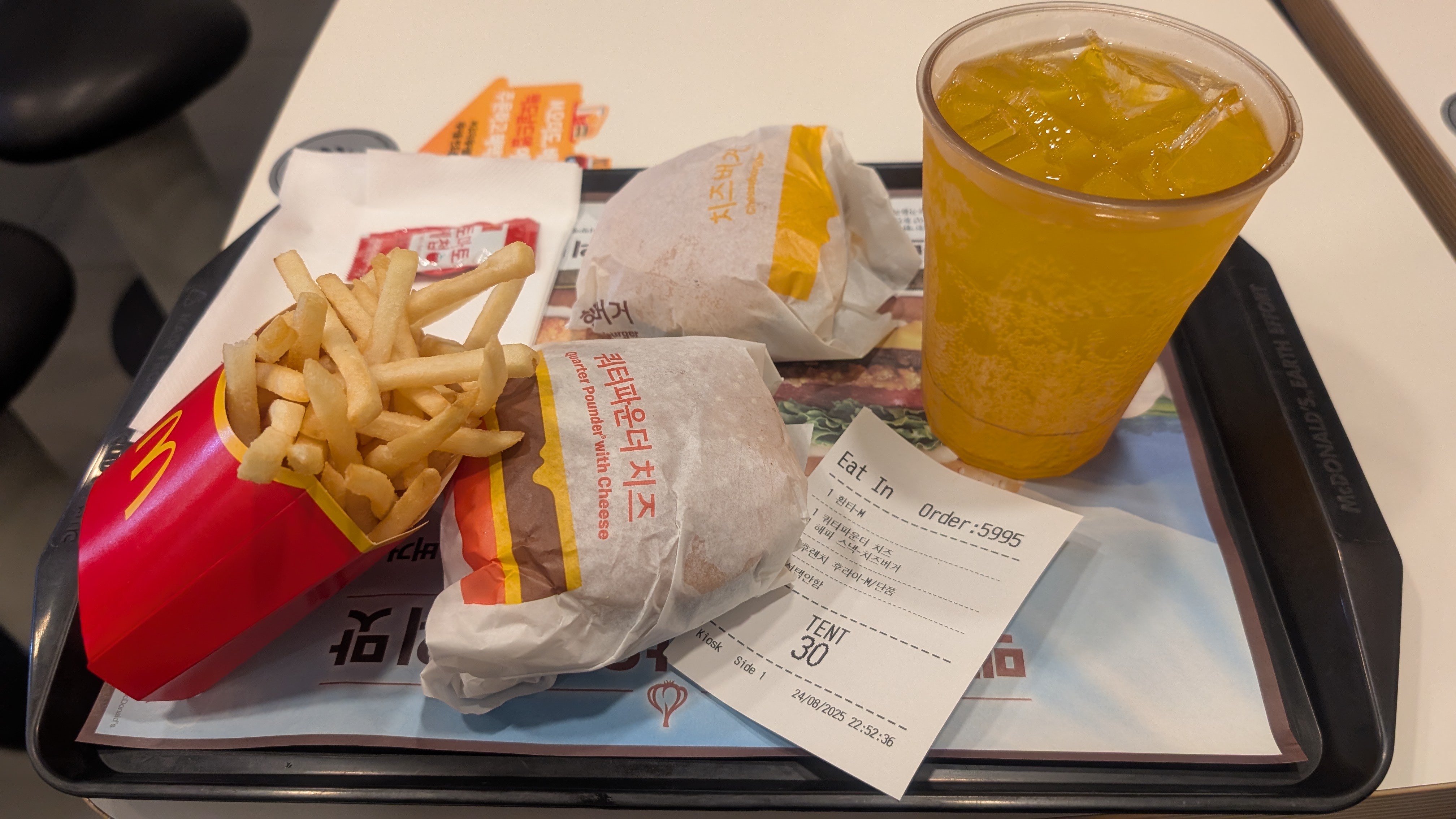 私はクォーターパウンダーチーズが大好物なのですが、日本では終売してしまいました。韓国ではまだ販売されているため、ここぞとばかりに頂きました。