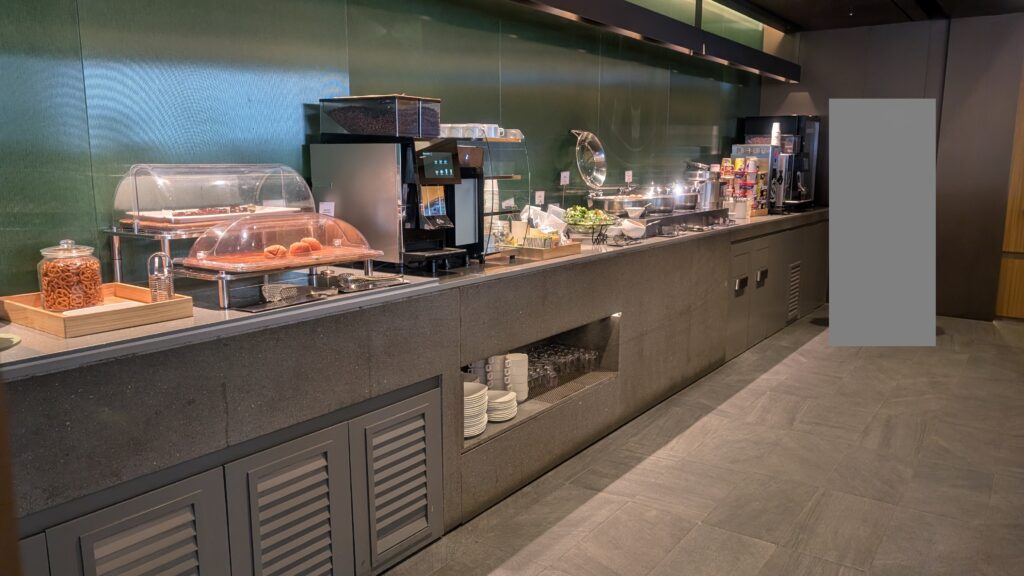 ビジネスクラスだったため、ラウンジを使えます。金浦空港では、ANAのビジネスクラスであればアシアナ航空のラウンジを利用できます。15分しか残っていませんでしたが、全力で堪能しました。