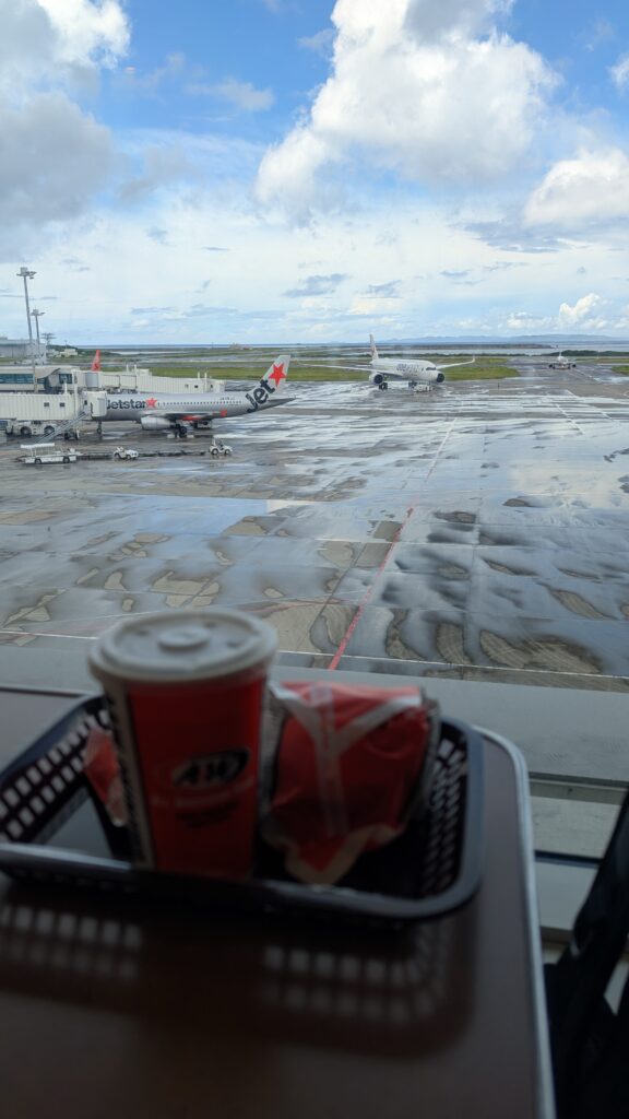 頑張って起きましたが、空港に着いたのは6:20でした。保安・出国審査は既に大行列。40分程度かけて出国できました。