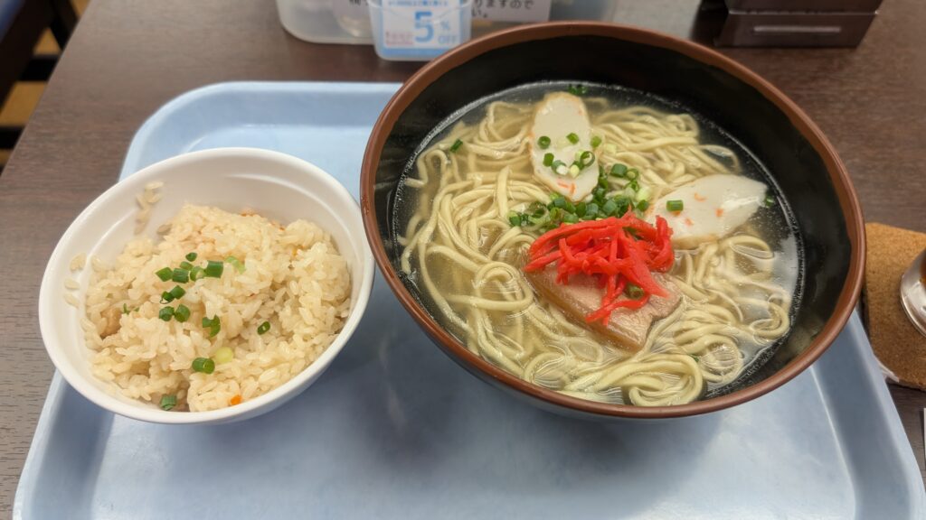 まずは沖縄そばとジューシー(炊き込みご飯)で腹ごしらえ。優しい味でした。
