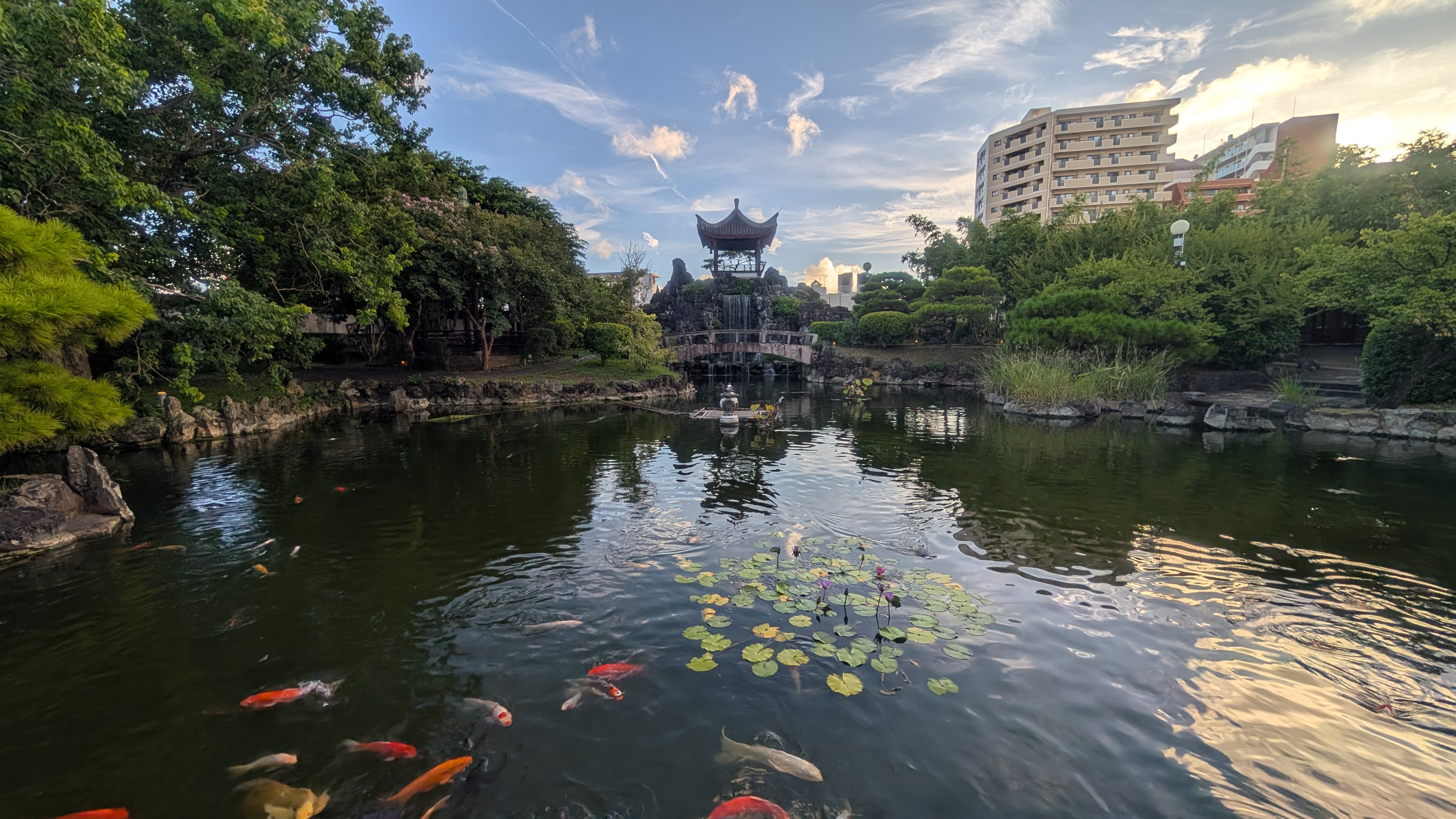 福州園に行ってきました。これは、中国福建省福州市と那覇市の友好を表す庭園だそうです。中国らしい華やかなデザインの建物もあり、楽しく鑑賞できました。